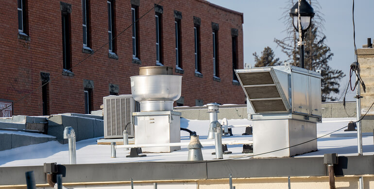 PVC roofing systems are one of the best restaurant roofing options due to their chemical resistance and seam strength near exhaust systems. Grease that lands on the surface won’t damage PVC as quickly as other materials, preventing future roof replacement and premature membrane failure.