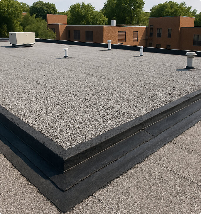 | Modified Bitumen | 20–25 years | Moderate | Moderate | Traffic tolerance, flexibility |