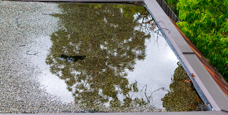 BURs are known for their excellent waterproofing characteristics. Heavy rain, snow, or hail may form large puddles of still water. When properly installed, commercial built-up roofing forms a continuous barrier over the roof deck. Multiple layers of roofing felts and hot asphalt reduce the likelihood of widespread moisture intrusion across commercial built-up roofs.