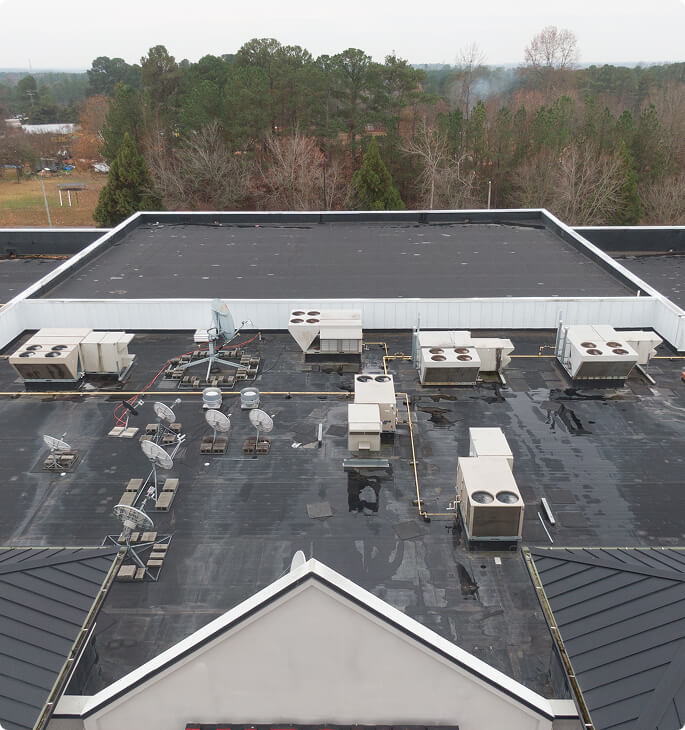 When water is unable to drain properly, a single-ply roofing membrane can undergo serious structural damage, lowering its lifespan. Single-ply roofing membranes perform best when water has a clear path away from the roof surface instead of ponding and adding stress to the material. We review slope and drainage systems before finalizing the roofing system design to ensure the roof performs its best.